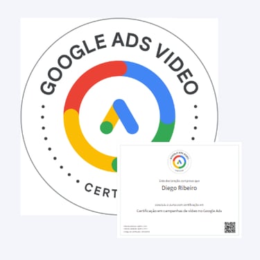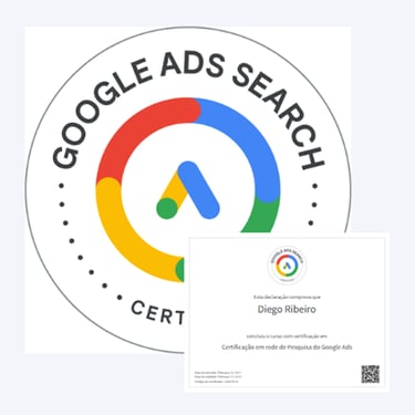 Diego possui 5 certificações internacionais do Google, demonstrando sua proficiência em geração de leads e otimização de campanhas orientadas por ROI. No marketing não basta apenas gerar leads é preciso saber fazer a gestão eficiente, por isso Diego também é certificado em RD Station Marketing Avançado, o que faz ele ter uma visão de todo o processo da jornada do cliente. Em 2021, ele foi aceito no programa de treinamento seletivo da V4 Company, uma das principais empresas de marketing digital do Brasil.
